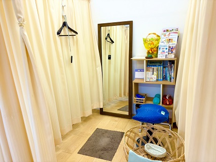 スカートやデニムでご来院の方には、お着替えをご用意しています。お仕事帰りやお買い物ついででも大丈夫です。